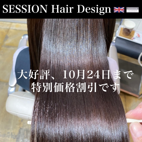 SESSION一押し人気メニューの髪質改善トリートメントを、大好評につき10月24日(日)までの期間、特別割引価格にてご案内させて頂きます。