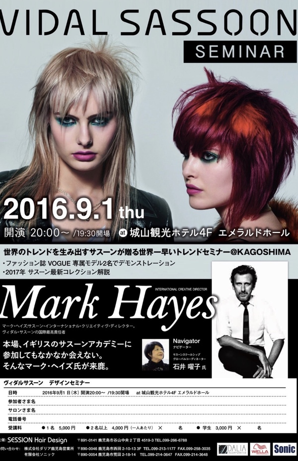 2016/09/01(木) 城山観光ホテル、エメラルドホールにて、VIDAL SASSOON SEMINARを行います。