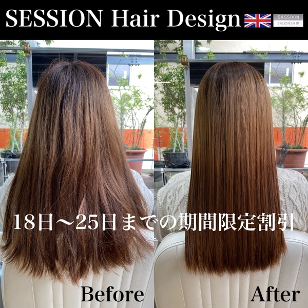 SESSIONでは、8月18日(水)〜25日(水)まで、人気メニューの【髪質改善トリートメント】を期間限定で割引させて頂きます。