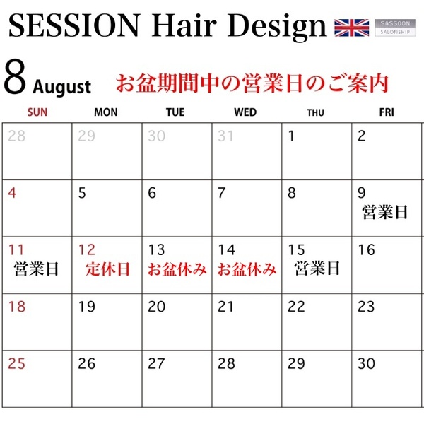 日頃、SESSION Hair Designをご利用頂きまして、誠に有難う御座います。