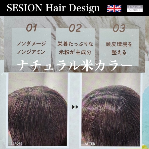 髪に対してノンダメージ、頭皮への刺激ゼロ、食品であり、栄養たっぷりな米粉をベースにしたパウダーで、お湯溶きノンジアミンカラーです。地肌からベタ塗りできるので根本まできれいに染められます。