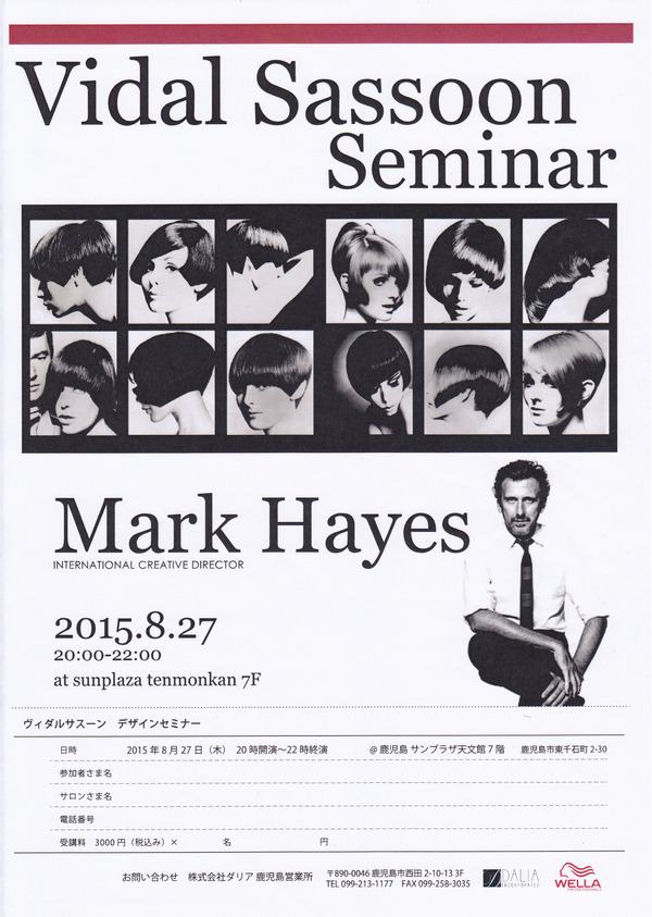 『Vidal Sassoon Seminar』においては、鹿児島の、日本のより多くの美容師の方に、マーク・ヘイズ氏、石井曜子先生の事を知って頂き、SASSOONの素晴らしさを伝えられたらと思います。